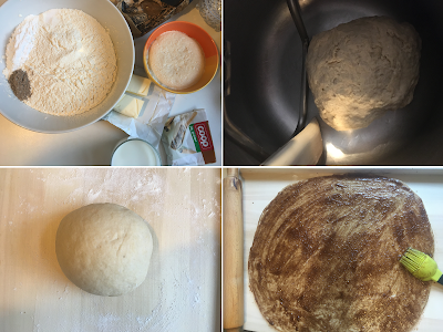 1 dl meleg, cukros tejben felfuttatjuk az élesztőt. A száraz anyagokat habverővel összekeverjük, elmorzsoljuk benne a vajat, majd hozzáadjuk az élesztős tejet és a tejet. (Üvegben hordjuk a házi tejet. A felső részéről öntöttem most, amiben sok a tejszín.) A tésztát kidagasztjuk és kétszeresére kelesztjük. Nekem majdnem egy óra kellett. Utána a lisztezett gyúródeszkán kb 3 mm vastagra kinyújtjuk. A töltelékhez a vajat megolvasztjuk, összekeverjük a cukrokkal, fahéjjal, és megkenjük a tésztát. A hosszabb végénél feltekerjük,ujjnyi vastag szeleteket vágunk belőle, és vajazott tepsin hagyjuk még kelni egy fél órát. Megkenjük a tetejét felvert tojással és megszórjuk jégcukorral. 20 perc után begyújtjuk a sütőt 200 fokra, és ha felmelegedett, akkor kisütjük a csigákat. Kb 20 perc. Amikor kivettük a sütőből, takarjuk le egy kis ideig egy konyharuhával, utána fogyasszuk csak el. Nagyon finom lett, én szeretem a kardamomot és a fahéjat is. Több ötletet kaptam innen.